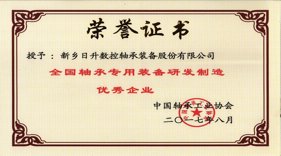 新鄉日升獲評“全國軸承專用裝備研發制造優秀企業”.