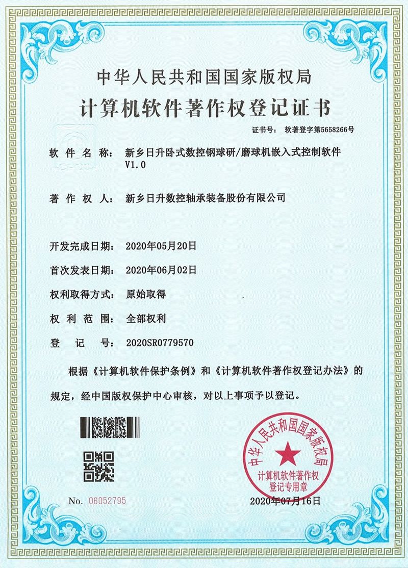(發(fā)布時間:2020-07-27 點擊:4564)近日,我公司的“新鄉(xiāng)日升臥式數(shù)控鋼球研/磨球機嵌入式控制軟件 V1.0”獲得國家版權(quán)局“計算機軟件著作權(quán)登記”。至此,公司共有17項計算機軟件著作權(quán)在國家版權(quán)局登記。