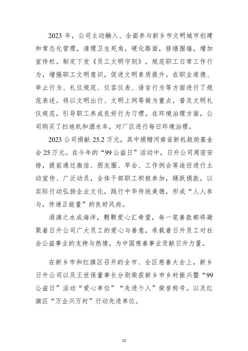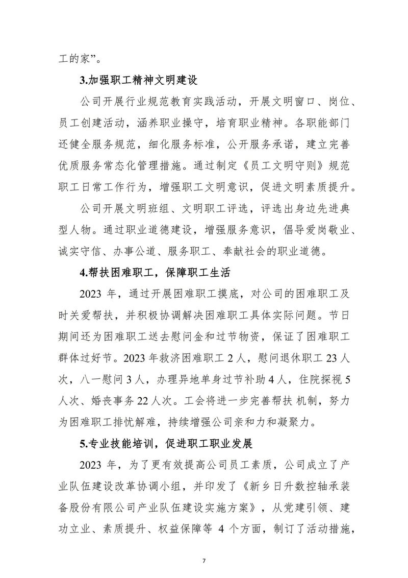 新鄉日升數控軸承裝備股份有限公司社會責任報告-2023