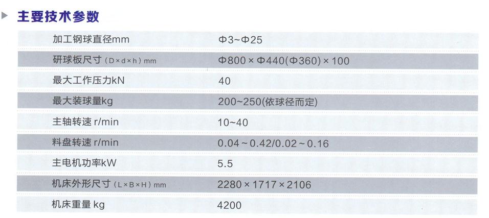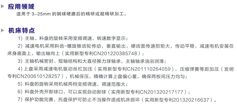 本機床是軸承廠和專業鋼球制造廠加工鋼球用的專用機床,適用于3~25mm的鋼球硬磨后的精研或超精研加工。(對于直徑3 mm ~5 mm的鋼球還可以進行硬研加工以代替硬磨工序。)經本機床加工后的鋼球精度可達G10~G5級。